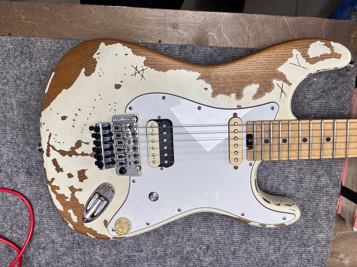 На просторах Авито мной был найден Jet JS 300. Нюанс конкретно этой гитары заключался в том, что она при каких-то обстоятельствах упала в магазине с полки и на ней образовались всякого рода дефекты в виде сколов краски на корпусе и всяких вмятин по тому же корпусу, грифу...но энтузиаста это не остановит. Наоборот, в этот момент я понял, кастом с этой гитарой уже начался, значит надо его довести до логического завершения.