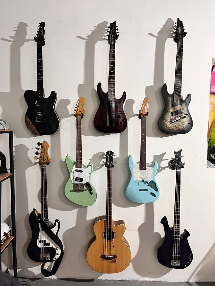 В этот момент случается переезд всей мастерской и гитара на какое-то время переезжает на стену в качестве украшения.