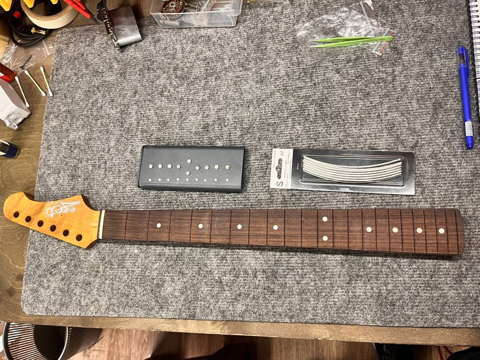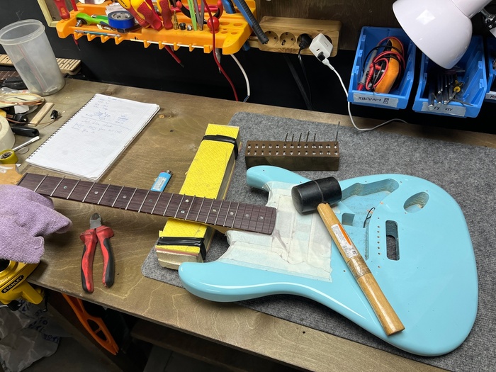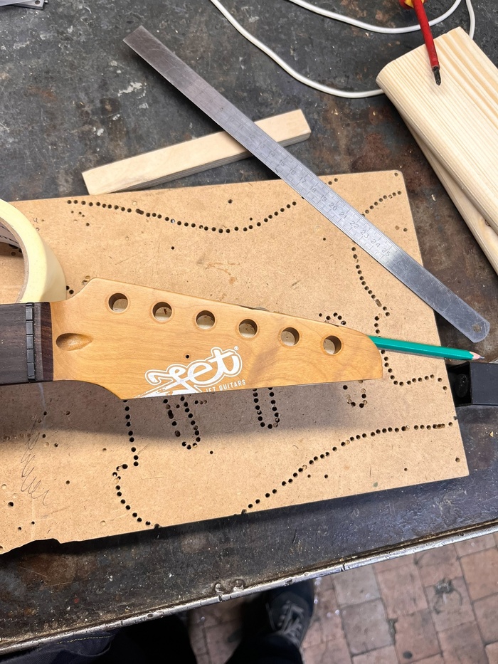 Естественно просто так гитара у меня не может лежать. Первое, с чего я начал был гриф. Поскольку я только-только начал помогать товарищу в гитарной мастерской, следовало бы научится работать с грифом, ладами, заменой и шлифовкой. Как нельзя кстати пришлась данная идея фикс заиметь гитару.