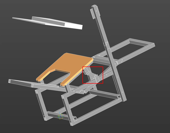 Сделал вот это вот, самое дурное - это способ крепления столешницы, через такой шарнир. Которую неделю думаю, ничего больше не идет в голову, разве что дизайнить направляющую на 4 подшипниках, которая будет выводить столшеницу в сторону, при этом подлокотники отдельно делать (совсем дурка).