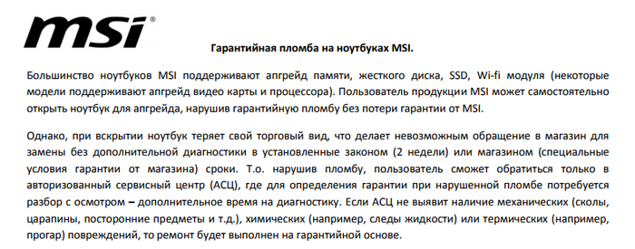 В августе этого года он был сдан мной в ремонт по гарантии с проблемой жесткого диска и системы охлаждения. Спустя 40 дней мне его вернули. Спустя месяц все симптомы вернулись, ремонт не принес должного результата. В тот же день было обнаружено что гарантийные пломбы были сорваны в Сервисном центре (сам не лез, сразу не проверил - дурак).