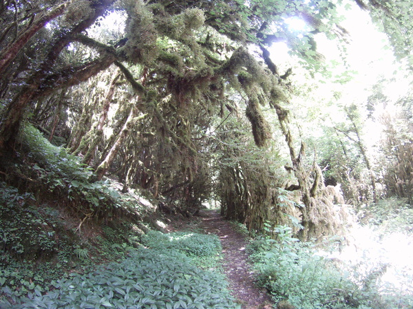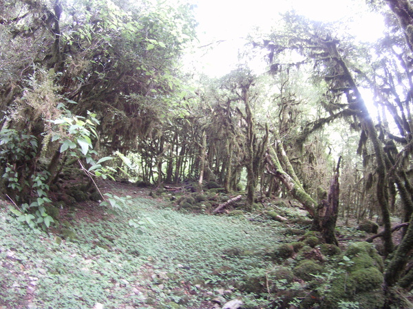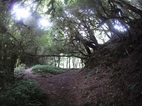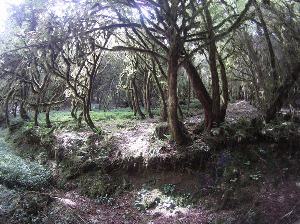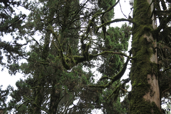 Сосны покрыты толстым слоем мха, глядя в верх чувствуешь себя в заколдованном лесу.