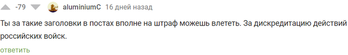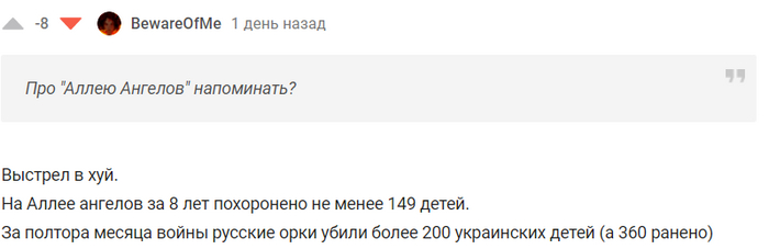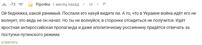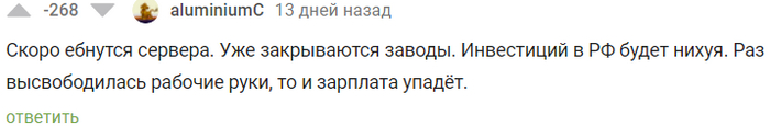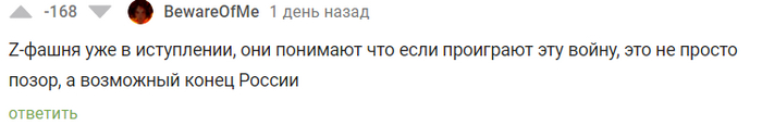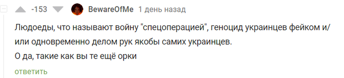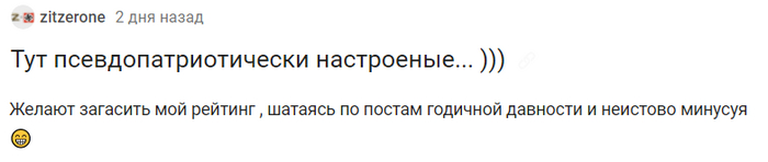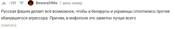 Сегодня я бы хотел рассказать вам о ГИГАНТЕ в плане рейтинга и, по совместительству, агитаторе за антироссийские настроения, а также ярым противником буквы Z. Привет, @BewareOfMe Я давно хотел посмотреть, что же ты такое. Спасибо за ссылку на реддит на твоей страничке. Я бы хотел сказать, что это интересное чтиво, но увы. Нечто вроде такого: