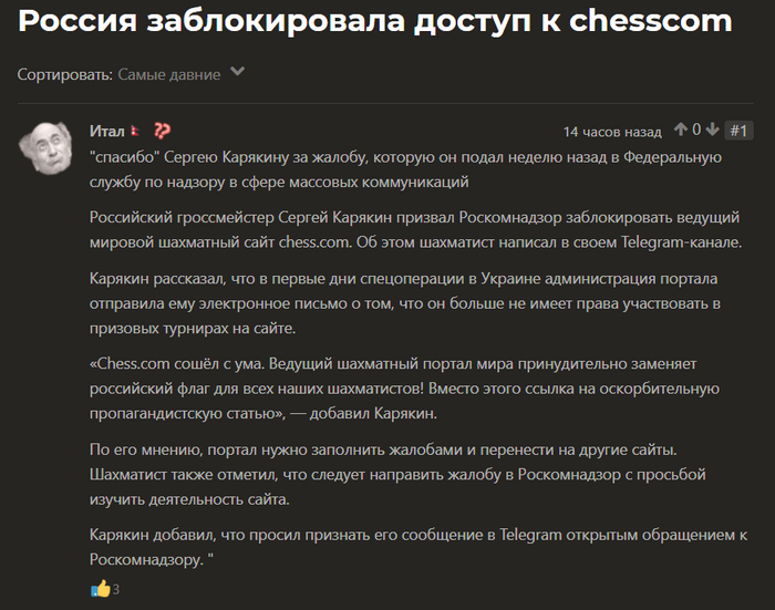 Я так понял, сайт обиделся на меня после прошлого поста о флаге. Попробовал зайти на chess сом через пк, ноут, телефон с разных ip. Но через впн других стран грузит..