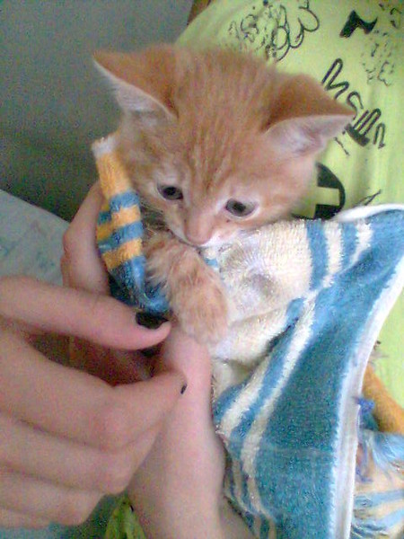 Вообщем , переехала в город N обратно , мама уехала к отчиму и оставила меня одну в комнате в общаге жить и учиться в вузе , практически не приезжала на тот момент ко мне , одиноко было . Потом , как всегда первые отношения , первая любовь . Ругались , мирились, и .... нехило так расстались , но все равно остались друзьями , он потом начал встречаться с другой , как всегда бывает при первой любви , больно было , плохо , обидно , и совсем одинооооко стало , кстати любовь жила моя на 4 этаже. Как-то в один осенний вечер , взгрустнулось совсем мне и захотела , чтоб вот сейчас появился котёнок, ну хоть , какое-то живое существо поселилось в одной комнате со мной . Пошла курить , ну сами понимаете куда ) сижу, думаю, как все паршиво , никого нет рядом , уже ночь на дворе , одиноко , там хотя б с бабулей жила , а тут , все еще незнакомый город мне , и .... слышу , за дверью маленький топот и потом писк , честно , прям за дверью, потом все тоньше и выше. Бросаю быстренько окурок в унитаз , распахиваю дверь, а там... вот это чудо сидит , сонное , глаз почти не видно , грязные все , пошатывается , худюююющий , фото его нет на тот момент , к сожалению, может это пойдёт ( сфоткано на старый еще телефон в 2009 году)