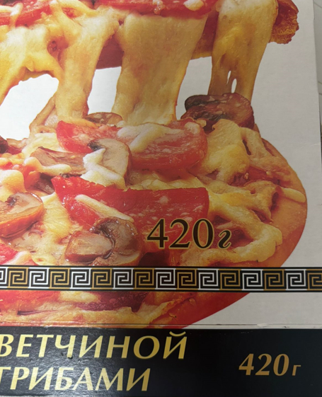 Решила и я написать свой первый пост на пикабу и он будет посвящен пицце, купленной в магазине крупной торговой сети (всем знакомой), не буду раскрывать, что за магазин так как это не имеет никакого значения, потому что продукт данного бренда довольно распространен и многие из вас его встречали. На фото ниже так выглядит содержимое упаковки и сама упаковка: