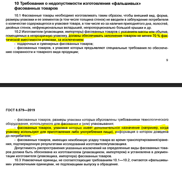 Вывод из моего поста таков, что производителем нарушается закон РФ: ст.18 ФЗ "О качестве и безопасности пищевых продуктов", а также ГОСТ 8.579-2019 упомянутый выше.