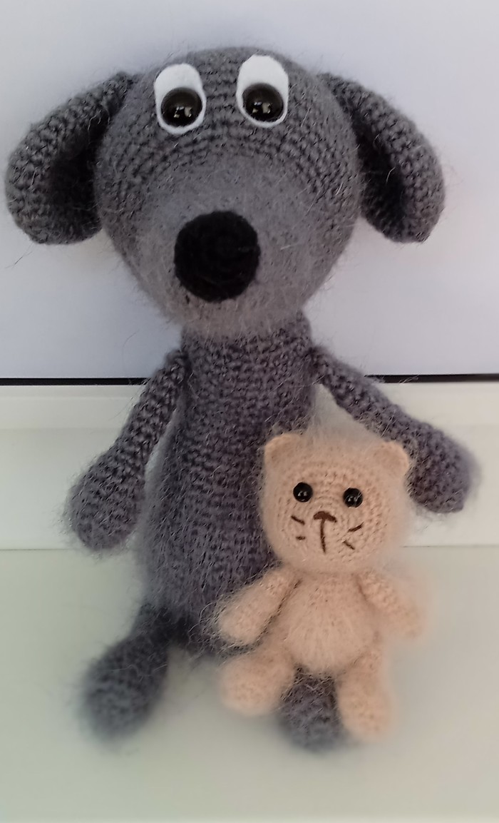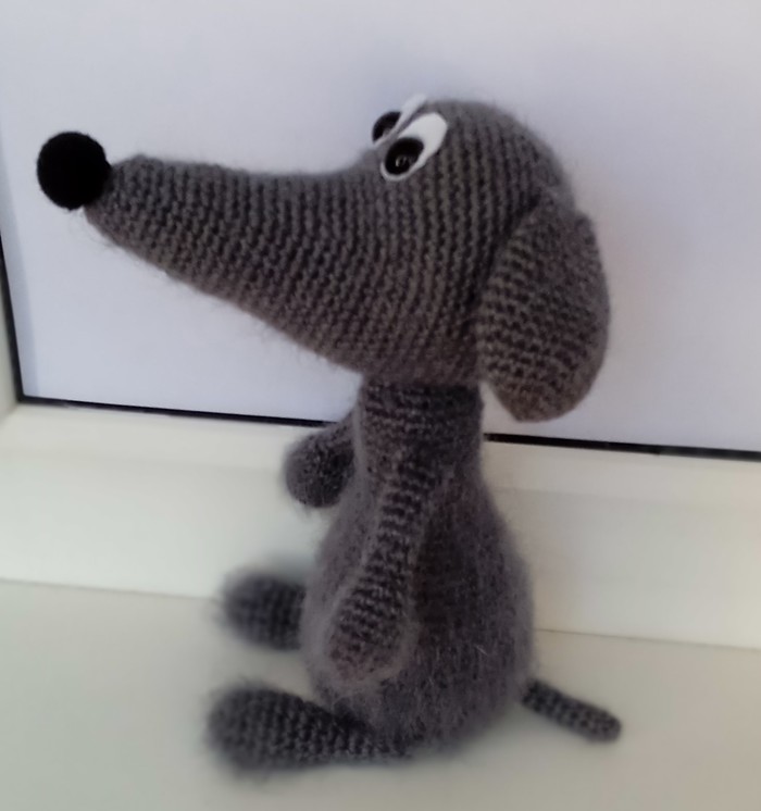 Нашла в Интернете бесплатное описание вязания песика Уно, автор artspace_sarai. Уж очень сын хотел игрушечную собаку. Вязала из ниток Yarn Art Merino Bulky, нитки очень жесткие, мне показалось, что для собаки самое то. В итоге, получился почему-то Крысопес, т.к. домочадцы до сих пор не пришли к общему мнению, кто у нас завелся: то ли пес, то ли крыс