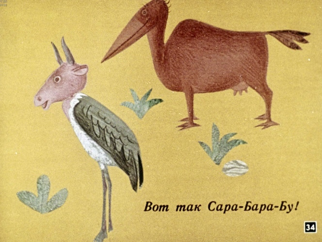 🦊 Перед вами кадры диафильмов по сказке "Лисичка со скалочкой". (Там где лиса с помощью нехитрой мошеннической схемы обменяла найденую скалочку на курочку, а потом на уточку и тд.)