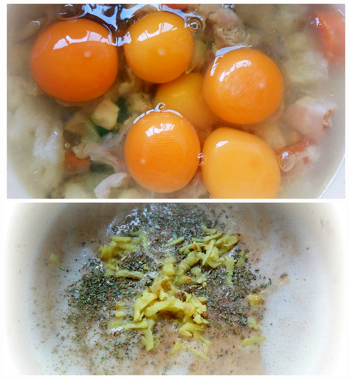 И разливаем содержимое по формочкам. Данного количества ингредиентов хватает на 2 формочки, размером со столовую большую миску (высота~7 см, диаметр ~18см).