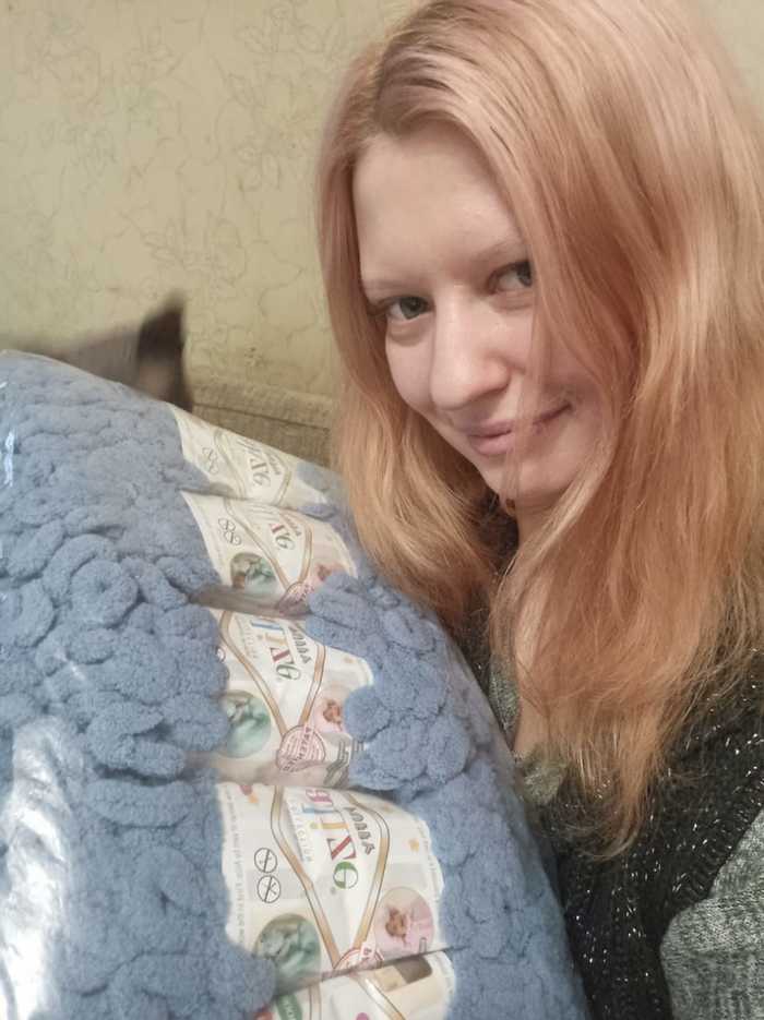Такая счастливая была (челюсть аж болела ) . Потом я как поняла, что эта пряжа не мне. Дочка положила у меня ,но сказала чтобы я не трогала. Это ей на пледик.