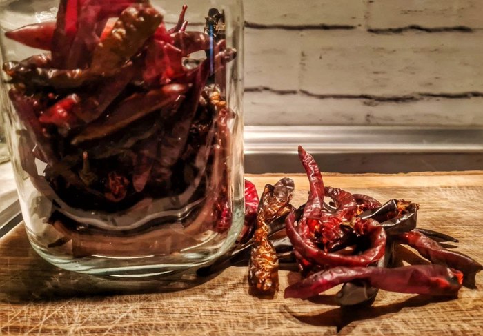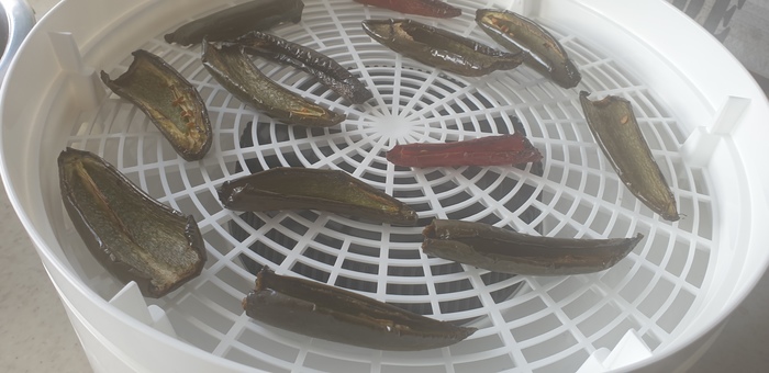 Теперь осталось дело за дегидратором. Тут перцы проведут всю ночь и должны стать сморщенными, чёрными заморышами, которые сделают любое блюдо ярким, насыщенным и немного дерзким.