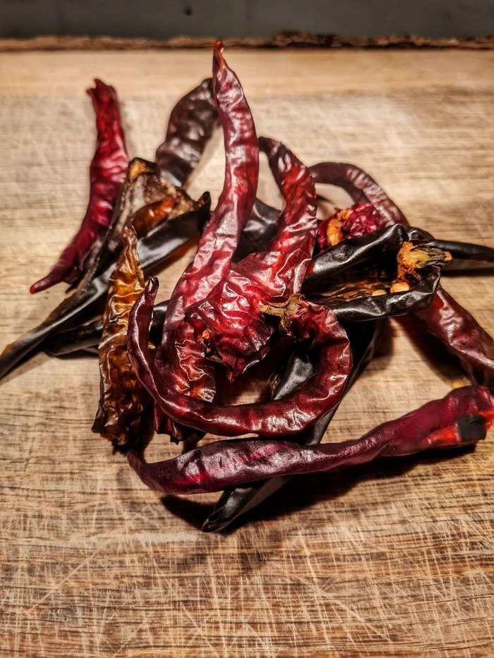 Чипотле - это копченый и высушенный красный халапеньо, который специально выдерживается на куста до темно-красного. Чипотле замечательно хранится, мелется на специи, заливается маслами или из него делают пряные, копченые соусы, которые вах как хороши для всего, что можно положить в рот.