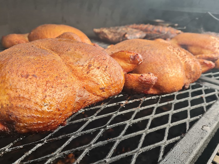 Сперва 10-12 часов коптим на ольхе. В этом году решил использовать не огромную коптильню, а переносной гриль.