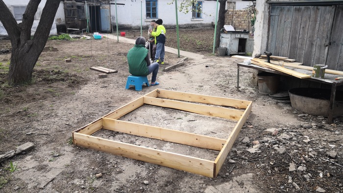 Итак, приступаем. По плану, собираем основу пола, лаги закладывал через 50 см, знаю что редковато, нам хватает: