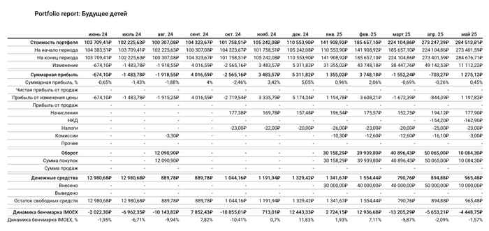 Общая стоимость портфеля на 07.05.2025: 284 513₽