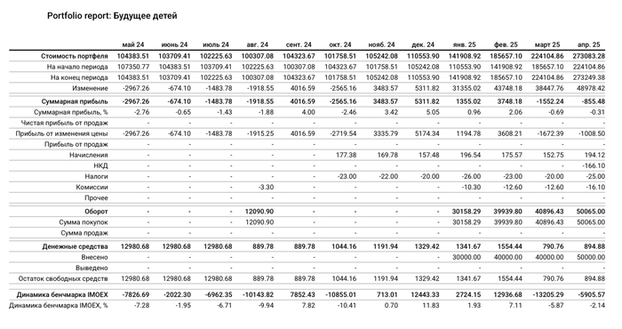 Общая стоимость портфеля на текущий момент: 273 083₽