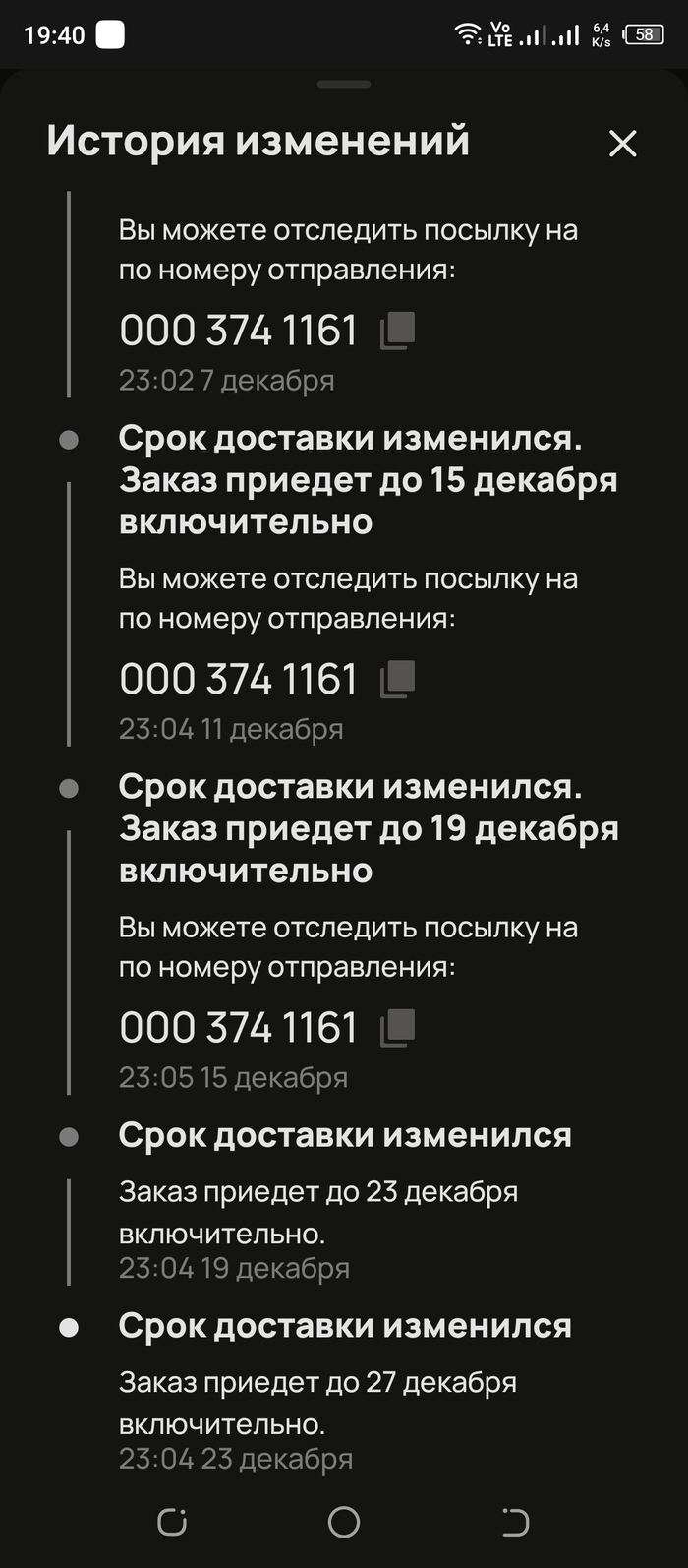 Теперь ближе к делу - мало того, что сроки доставки переносили раза 4 (это при условии, что везти заказ ну километра 3-4 надо было), и последний срок доставки указан в приложении 27.12.24, который уже более не движется вперёд.