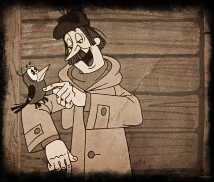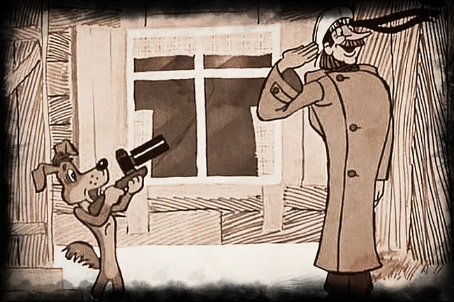 Jбратите внимание на выправку и вальяжный поднос руки к головному убору - явно ведь в немалом чине Печкин...