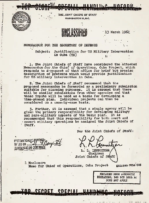 Доброго времени суток, уважаемые любители Истории - сегодня речь пойдёт об операции "Северный лес/Northwoods", которую в рамках борьбы с Кубой в 1962 году разрабатывали доблестные разносчики демократии из ЦРУ и Пентагона. Пристегните ремни и откройте окна - будет жарко...
