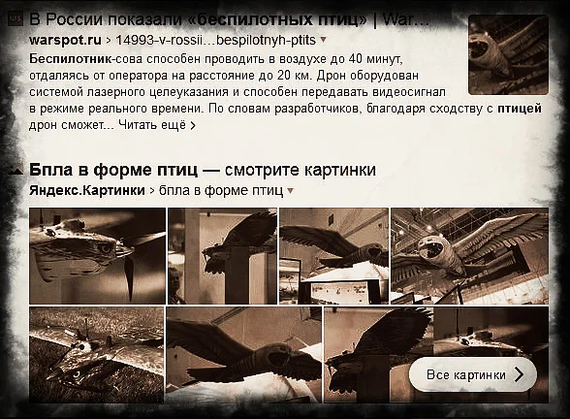 Сегодня об этом можно говорить открыто (да и то - лишь о крупных моделях), а представьте себе, насколько передовой была разработка автономного миниатюрного биокибернетического средства связи с элементами ИИ, которому не требовалась подзарядка (поглощает органику, имитирует повадки птицы)?