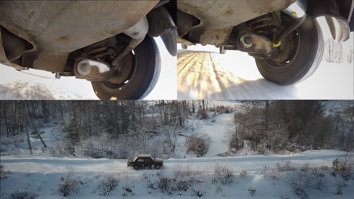 Все доработки я проверяю на привычном для меня треке по ралли-спринту. Но за неделю до этого выпало огромное количество снега. Трек никто не чистил и к моему приезду снег уже подтаял и превратился в очень плотный наст почти по самое днище автомобиля. Поэтому от замеров времени пришлось отказаться – даже просто проехать круг не получилось, увязли по самые помидоры)) Поэтому отправились на другую трассу и тестили строго на ощущения.