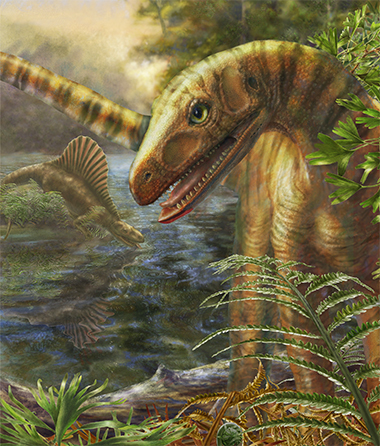 Архозавры (предки динозавров и курицы) появивлись в поздней перми, почти одновременно с терапсидами (нашими предками), и одновременно же с последними выработали очень важное для быстрого передвижения положение задних конечностей — сведенное, прямое и под туловищем. А вот дальше архозавры, вместо того, чтобы возиться с преобразованием пояса передних конечностей, вообще отказались от их использования для движения, и выработали принципиально новый тип движения – бипедальный (двуногое хождение).