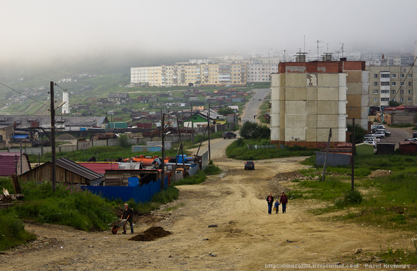 В городе вдобавок ко всему обнаружилось, что только я единственный додумался ходить в августе с коротким рукавом. Длинные волосы, короткий рукав, камера на шее... в общем, всё, что нужно, для того, чтобы выделиться в толпе местных жителей! Никак не получалось отделаться от колымских стереотипов, и поначалу факт моей выделенности меня немного смущал, но потом вроде бы ничего, пообвыкся, да и людям в целом до меня дела особого не было.