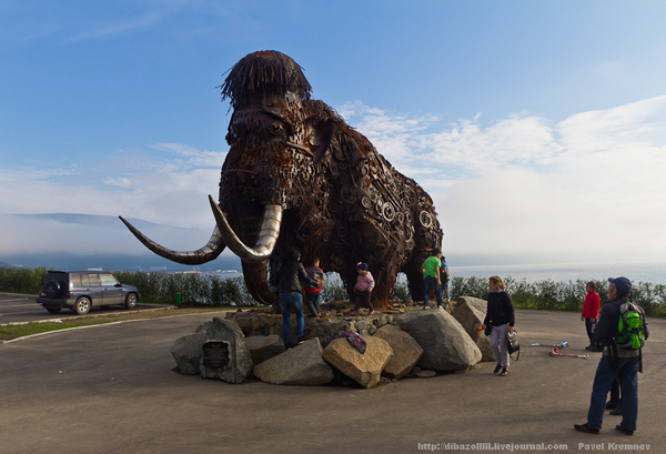 А вот и он! Красавец, созданный скульптором Юрием Руденко, стоит на набережной у бухты Нагаева. Новый символ столицы Колымы! Хотя скульптура мамонта официально называется "Время", местные так и называют его - "Мамонт". Мамонт установлен в сентябре 2013 года, но уже всем полюбился.