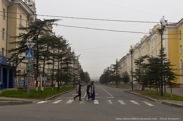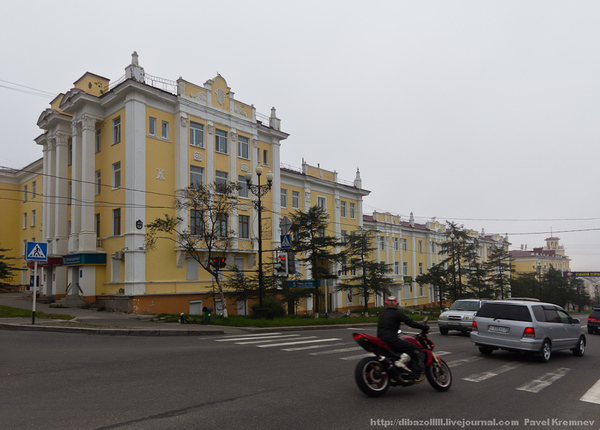 11. Ничего удивительного в этом нет. В местном музее мне подтвердили, что я не ошибся, обнаружив архитектурную схожесть с Северной Столицей. Дело в том, что проектированием города, ещё в те времена только строящегося у берегов Охотского моря, занимались ссыльные инженеры, многие из которых были родом из Питера. Зная, что вероятность их возвращения на берега Невы ничтожно мала, они воплощали в облике нового города тоску по дому.