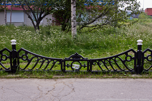 Невозможно пройти мимо фирменных магаданских городских заборов! Москва, завидуй. Справедливости ради надо сказать, что белый медведь не является символом Магадана, да и вообще почти не обитает в Магаданской области.