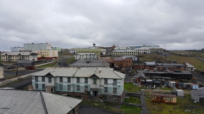 Когда то тут находились военские части которые несли охрану наших берегов, но великая оптимизация пришла и сюда. Так же у жителей была своя закрытая ферма (где держалт скот), мясо было всегда свежее, но с развалом ссср было приянто все закрыть и возить продукты кораблями или самолетами.