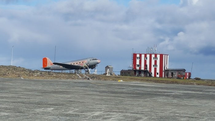 Сам аэропот находиться на острове диксон на котором остались работать единицы жителей, аэропорт и метеослужба это единственное, что еще продолжает фукционировать, всех жителей расселили либо на берег либо в другие города.