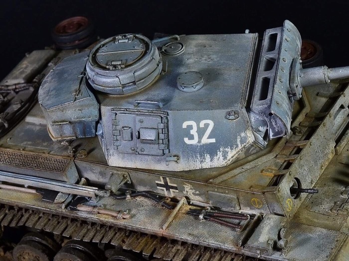 Были сымитированы потертости краски, тем самым я хотел показать, что машина достаточно долго оборонялась на улицах Берлина. Для имитации потертостей и сколов краски я использовал методику "лак для волос".