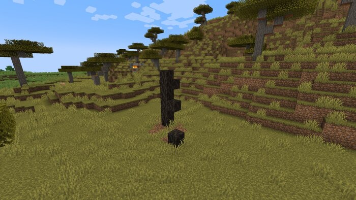Мод добавляет такие структуры как обгорелое дерево, муравейник, термитник, палатка с разбойники