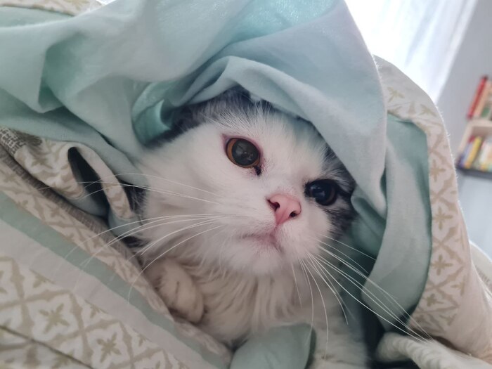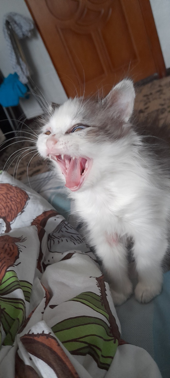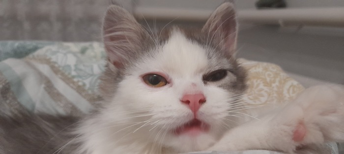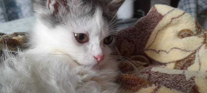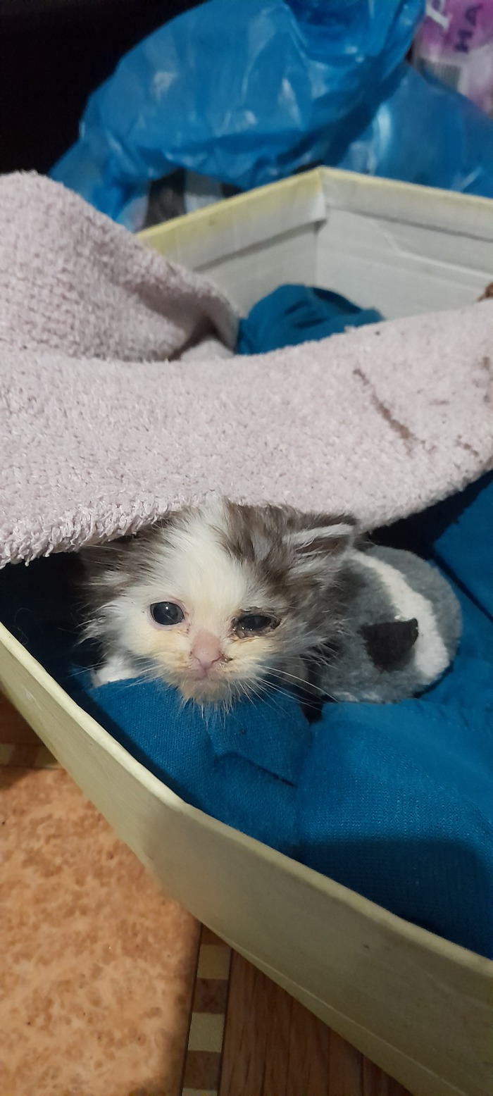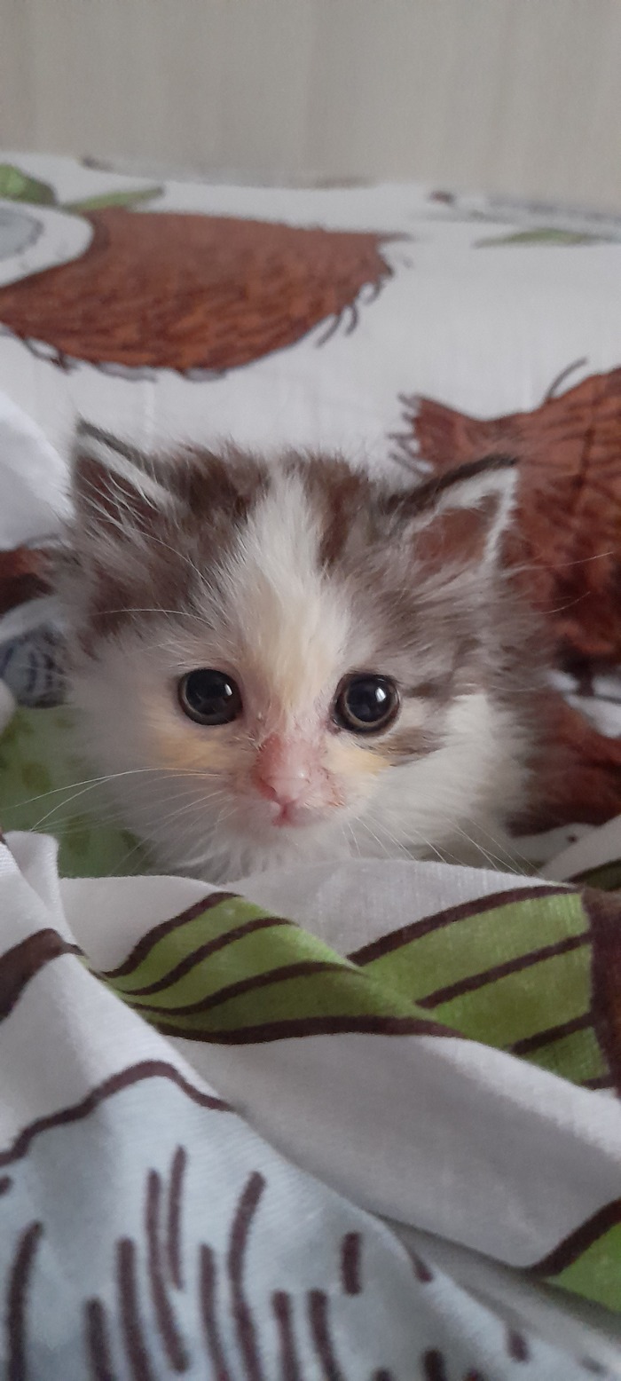 Родилась она 01.06.2022, спустя месяц её мама умерла и мы с женой взяли её под своё крыло. К сожалению, был ещё котёнок, который изначально был более крепким и немного пузатеньким, именно он громко кричал и мы заметили что они совсем одни, но умер через пару дней, а Триша была совсем плоха, не ползала, а только лежала.