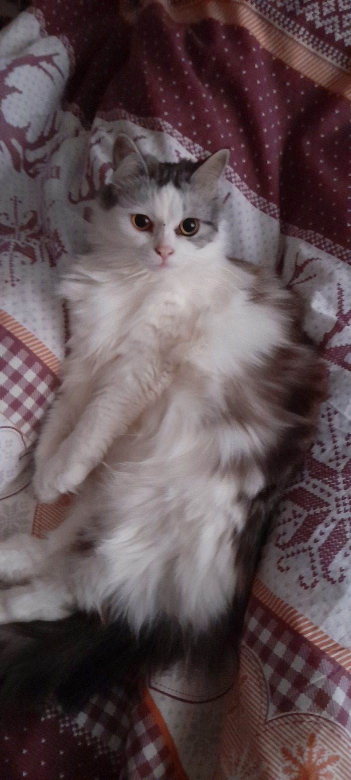 А это она сейчас, очень пушистая и красивая, характер стал мягче, когти в ход пускает очень и очень редко, но всё так же терпеть не может сидеть на руках. Уже и не скажешь что она была с большим недовесом.