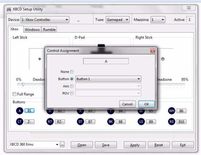 На триггеры (курки) можно назначить как и просто кнопки так и "Axis" (ось) я назначил пока что Z- и Z+. Дальше буду экспериментировать, так как мне нужны курки для гонок, чтобы контролировать скорость машины а не газ в пол.