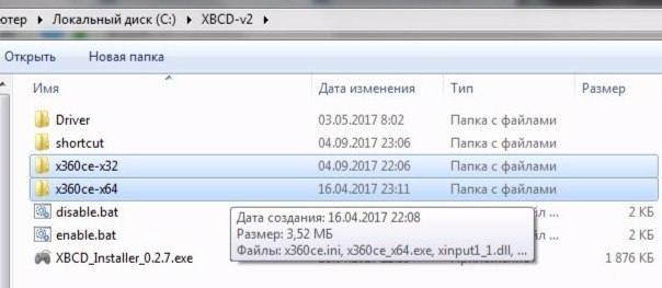Если игра у нас 32 битная то нам нужна папка "x360ce-x32", если 64 битная - "x360ce-x64"