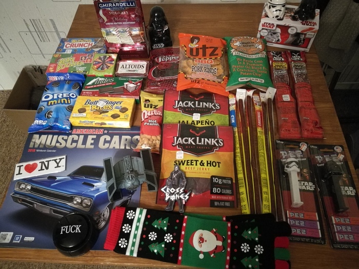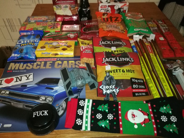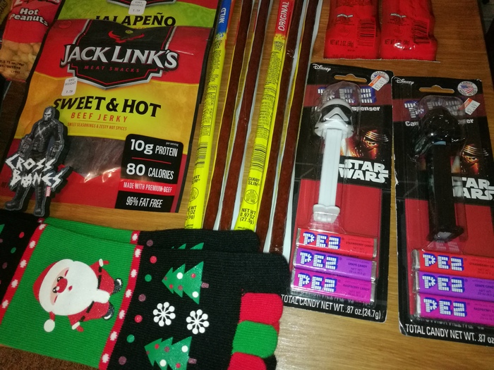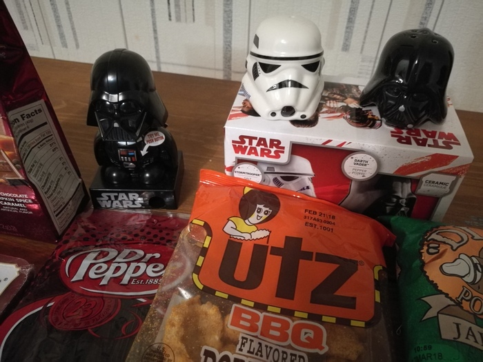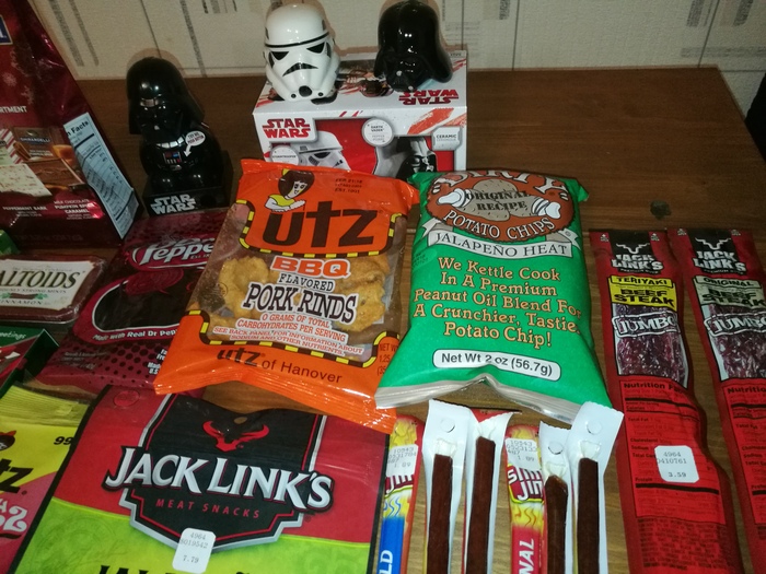 Разные шоколадки, типа лимитед эдишен фром Сан Франциско, мини печеньки Орео, воздушный рис в шоколаде, Altoids это корица в алюминиевой коробочке, ну и Др.Пеппер в виде мармеладок.