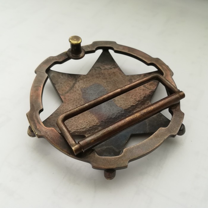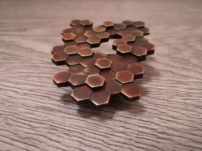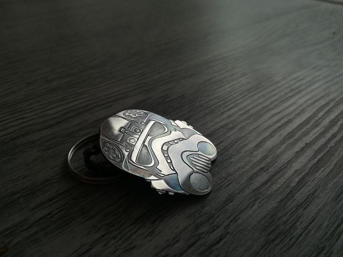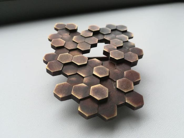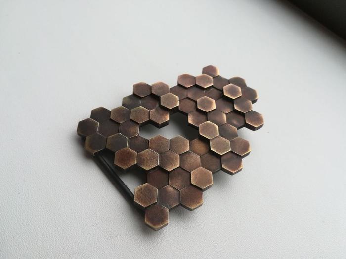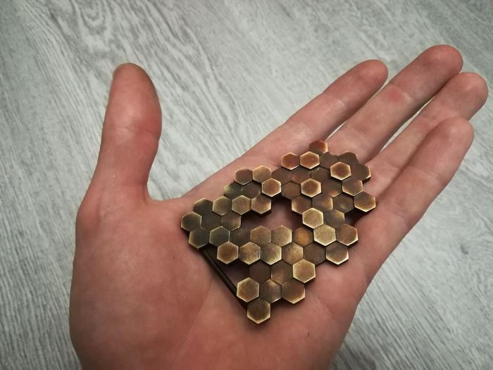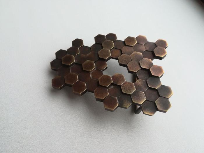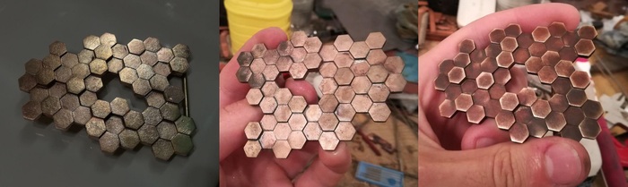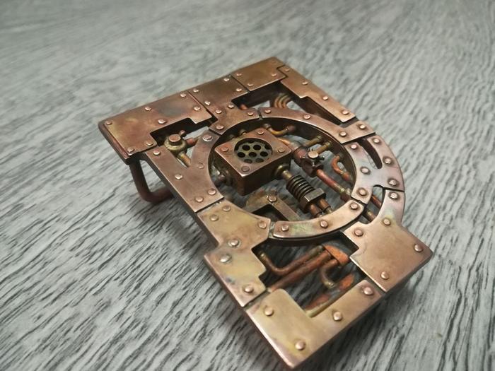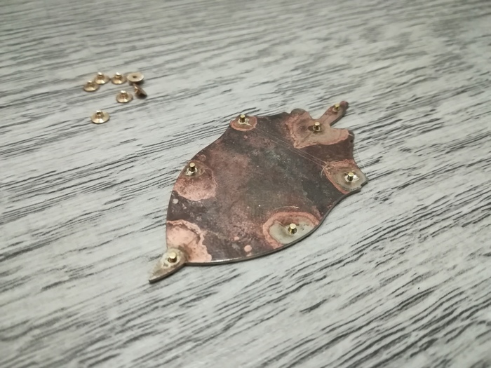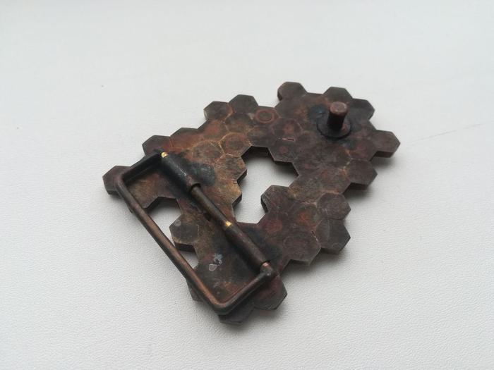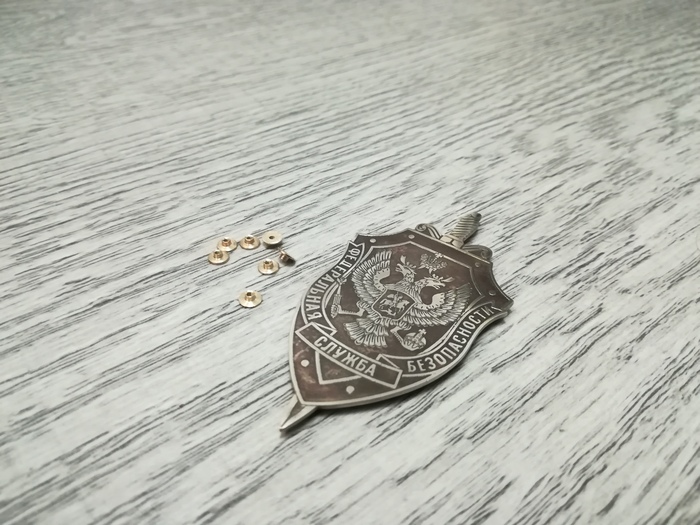 Значок готов к нашатырной бане. Я отшлифовал лицевую и боковую поверхности, просверлил 4 отверстия, снял фаски и немного задекорировал край