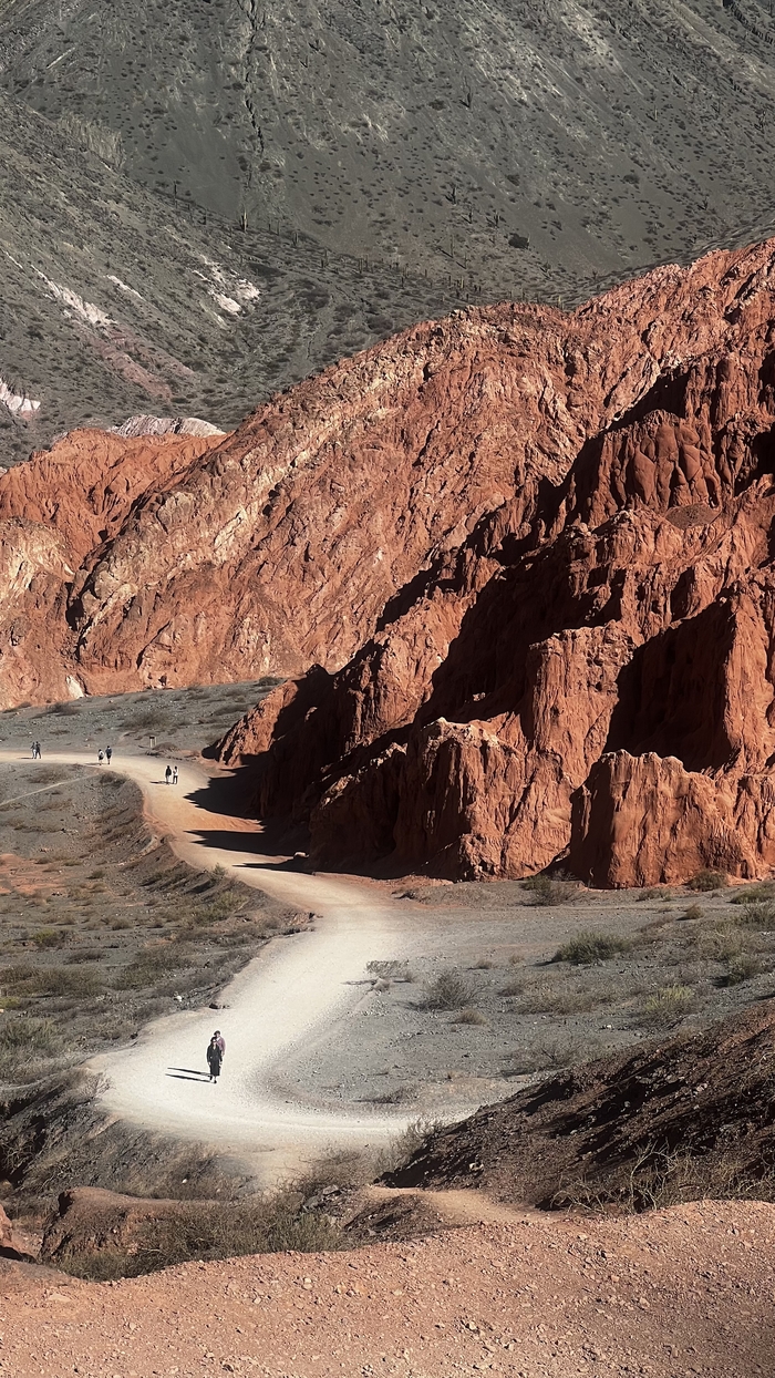 За полтора километра стоял шлагбаум. Въезд платный, открывается пункт в 9 утра. Сейчас только 8. Ждать целый час - скучно. Сначала мы думали просто пешком подняться оставшиеся полтора километра, но заметили, что шлагбаум никак не закреплён. Поэтому просто открыли его, проехали и закрыли за собой. На верху было на самом деле красиво - цветные хребты, как большие волны, но в полоску. Можно было подойти ещё ближе, но откровенно говоря, мы выбрали неправильно время, и ехать на точку надо вечером, потому что утром слишком жёсткий контровой свет. Да и горняшка не проходит за 5 минут.