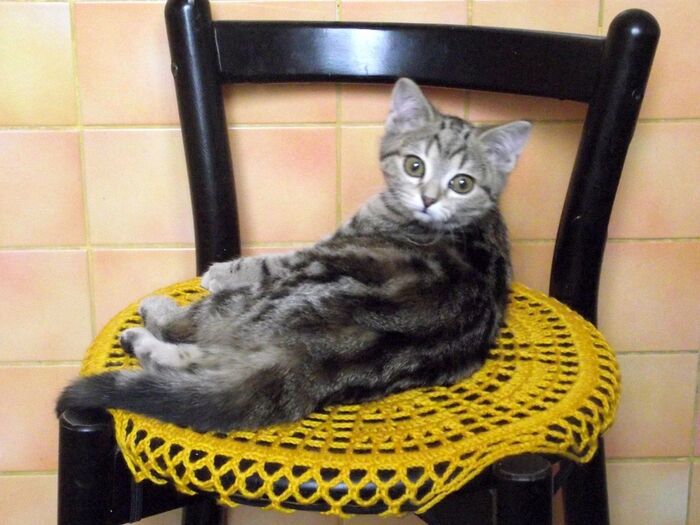 Пока дети были маленькие, мы жили без кошек, и без них хлопот хватало. Но вот сын младший подрос и стал просить кошку. А я сама кошатница, что уж тут) Думала я, думала, и наконец решилась. Подписалась на волонтёрский паблик, решила так - буду просматривать, когда "ёкнет" от фотки, значит моя кошка. Где-то месяца два-три я вот так глядела, пока наконец не "ёкнуло". Увидела я вот эту вот фотку и пропала.