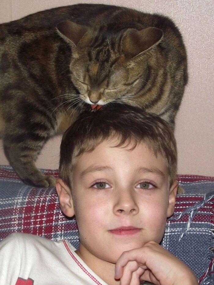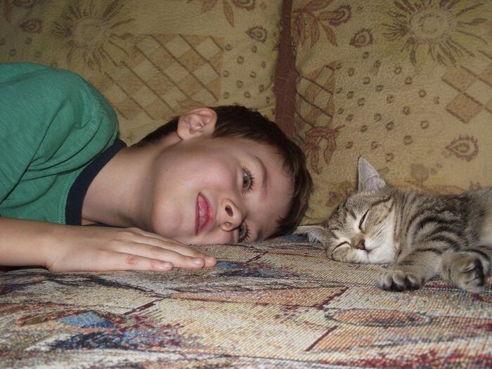 Быстро оказалось, что нам фантастически повезло, это идеальная кошка. Она умная, она понимает что ей говорят, она нас всех любит. Моего сына она, по-моему, считает своим котёнком.