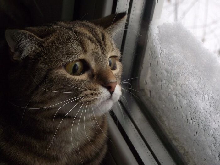 Как все кошки, обожает смотреть в окно