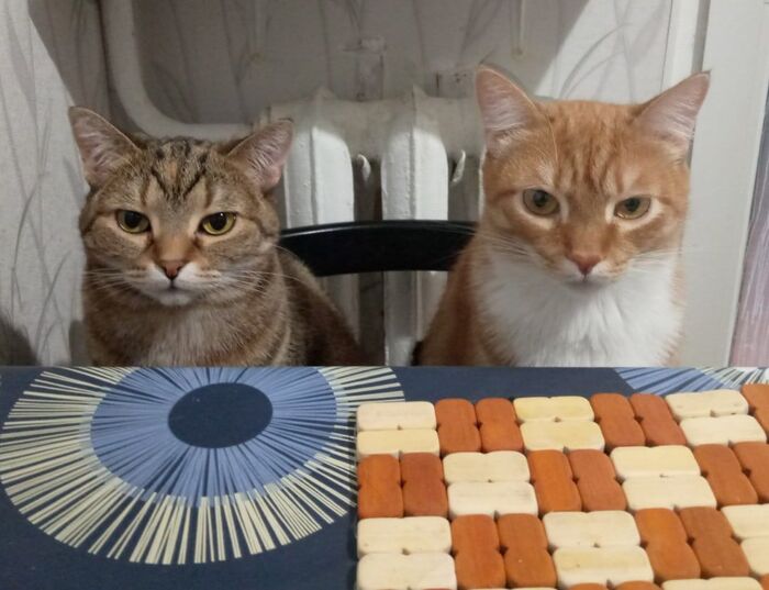 У нас живут кошка Туся, красавица и умница, и кот Шурик, рыжий толстый дурак. Тусе 8 лет, Шурику 7. Приехали с нами из Сибири.