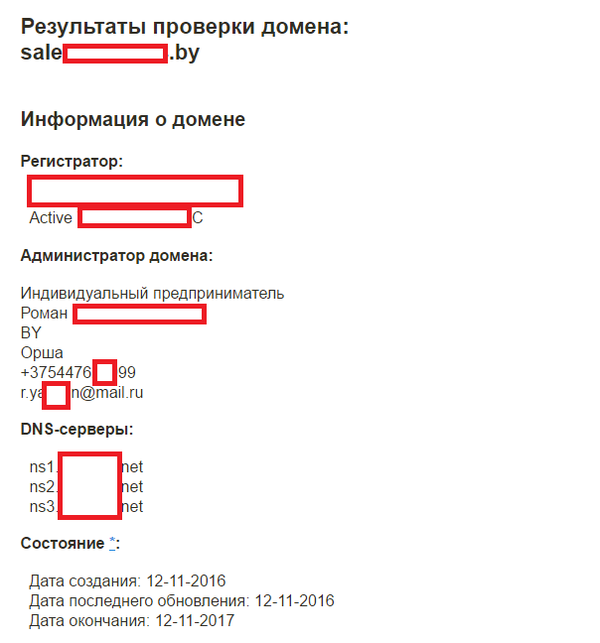 Получаем примерно следующее сообщение с датой создания , последнего обновления сайта и т.д.