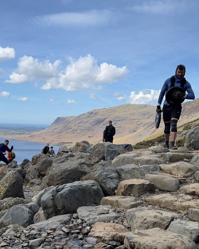 Из комментариев в Инстаграме к этому и другим видео: конкретно к этому восхождению Лори специально не готовился, т.к. для него не впервой проходить по 50-60 или даже 100 км пешком, гулять по горам, но эта прогулка однозначно останется одной из самых любимых. В основном вся подготовка состояла из кучи зашагиваний на ящик со штангой 80кг на плечах, пока он участвовал в этом же году в 50 км трейле (1-й или 2-й челлендж) и отдыхал где-то в Гонконге, он не был уверен, что эти тренировки будут иметь хороший положительный перенос на восхождение в реальной жизни, поэтому Лори планировал тащить как можно дольше эти 80кг, затем чередовать перенос рюкзака 40кг и двух дисков по 20кг в одну сторону, возвращаясь за другим грузом. Потребовалось 9 часов ему и команде, чтобы дойти до одной из вершин ( Lingmell Col) на пути к Скофел-Пайк, затем команда и Лори разделили груз, чтобы успеть подняться в конечную точку до заката, т.к. собой у них был минимум еды и воды. Там уже сфотографировались и закопали груз среди камней, чтобы вернуться за ним в будущем и не тащить вниз ночью по скалам.