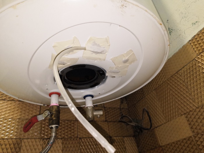 Потекла колба бойлера по шву, вода вытекает в отверстия для крепления электроники. Повезло что ничего не погорело.