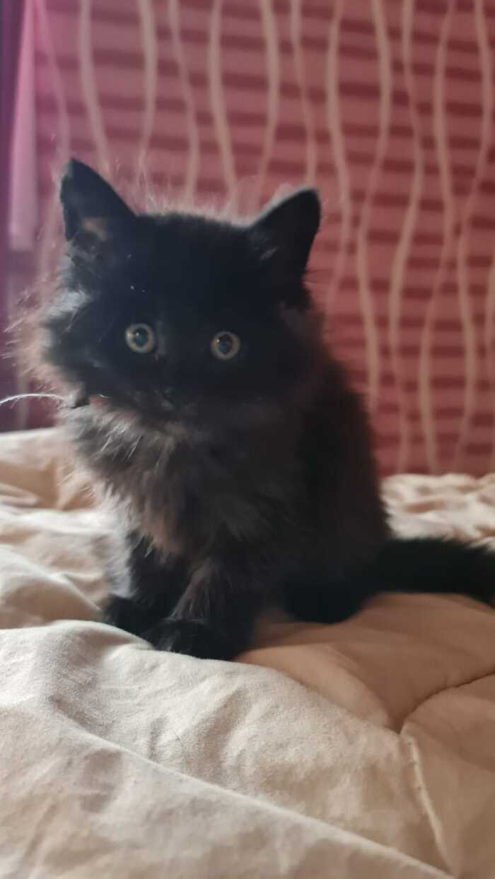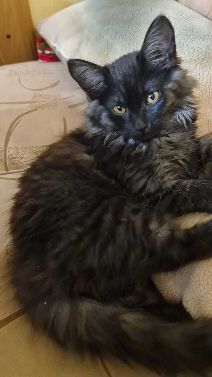 Пришел , просил кушать, мяукал, давали корм. 2 дня не могли поймать, дикий. Мамка такая же дикая, только пропала куда-то, вот он к нам и пришел. Поймали садком ночью светив в глаза фонариком, чтоб нас не видел. Живет дома уже неделю. Проглистогонили, скоро в ветеринарку повезем на укол. Освоился играет с детьми, но пока еще боится резких шумов.